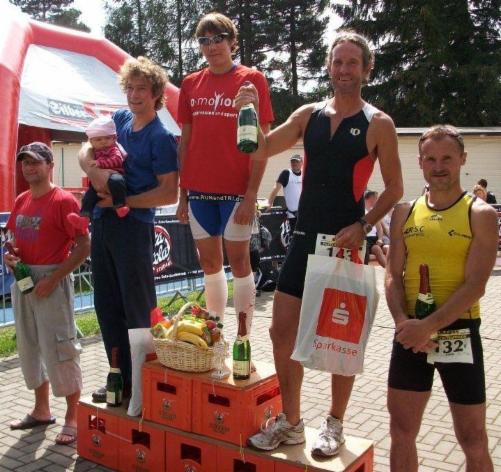 Dann hörte ich den Sprecher, der die erste Frau ankündigte, da war ich leicht verwundert, weil ich keine weit und breit sehen konnte. Jetzt bemerkte er aber, dass es sich um den „Duhathleten“ handelte, ich sollte also schnell wieder zum Friseur! ;)